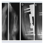 No internal fixation was employed. Cancellous bone chips were packed at both ends. Stabilization of the segment was always done with a mono-lateral external fixator, without the guidance of an image intensifier.
