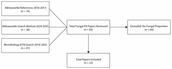 Fungal organisms are conventionally estimated to account for 1 % –2 % of periprosthetic joint infection (PJI) cases, although diagnostic and reporting limitations may result in systematic underestimation. Using a quantitative missing-data sensitivity analysis across 23 studies encompassing 28 253 PJI cases, we estimated an adjusted Candida PJI proportion of approximately 5 %, increasing to nearly 10 % in chronic or refractory infections.