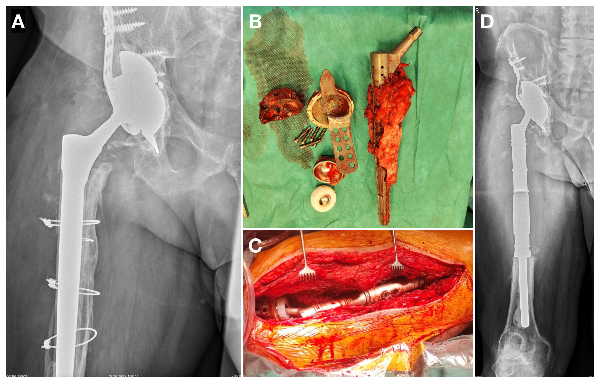Periprosthetic joint infections (PJIs) are dreaded complications following joint replacement surgery that are associated with increased patient morbidity and mortality (Ramos et al., 2025). Achieving infection control, particularly in the setting of chronic PJIs with multiple prior revisions, is often a complex and challenging task. Surgical treatment of such cases, which is regarded as the gold standard, is especially demanding due to a compromised soft-tissue envelope and, in particular, resultant loss of bone stock (Corona et al., 2018). Many of these cases still face infection recurrence and culminate in subsequent amputation of the affected limb (Sukhonthamarn et al., 2021).